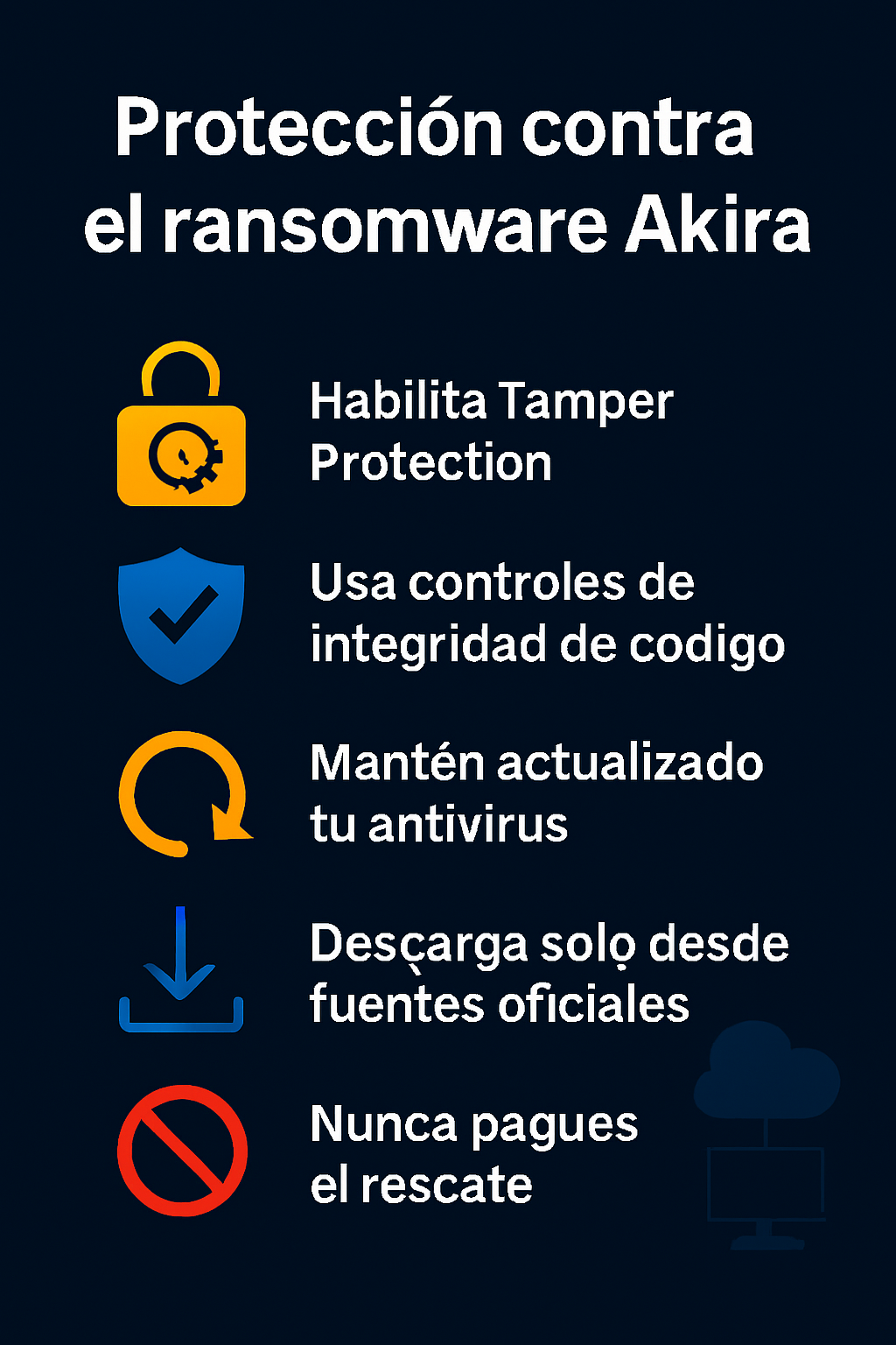 Recuerda: nunca pagues un rescate. No garantiza la recuperación de tus archivos y solo alimenta el ciclo del cibercrimen.